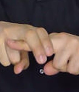 This is an American Sign Language signal used to remind students to quietly have a seat.